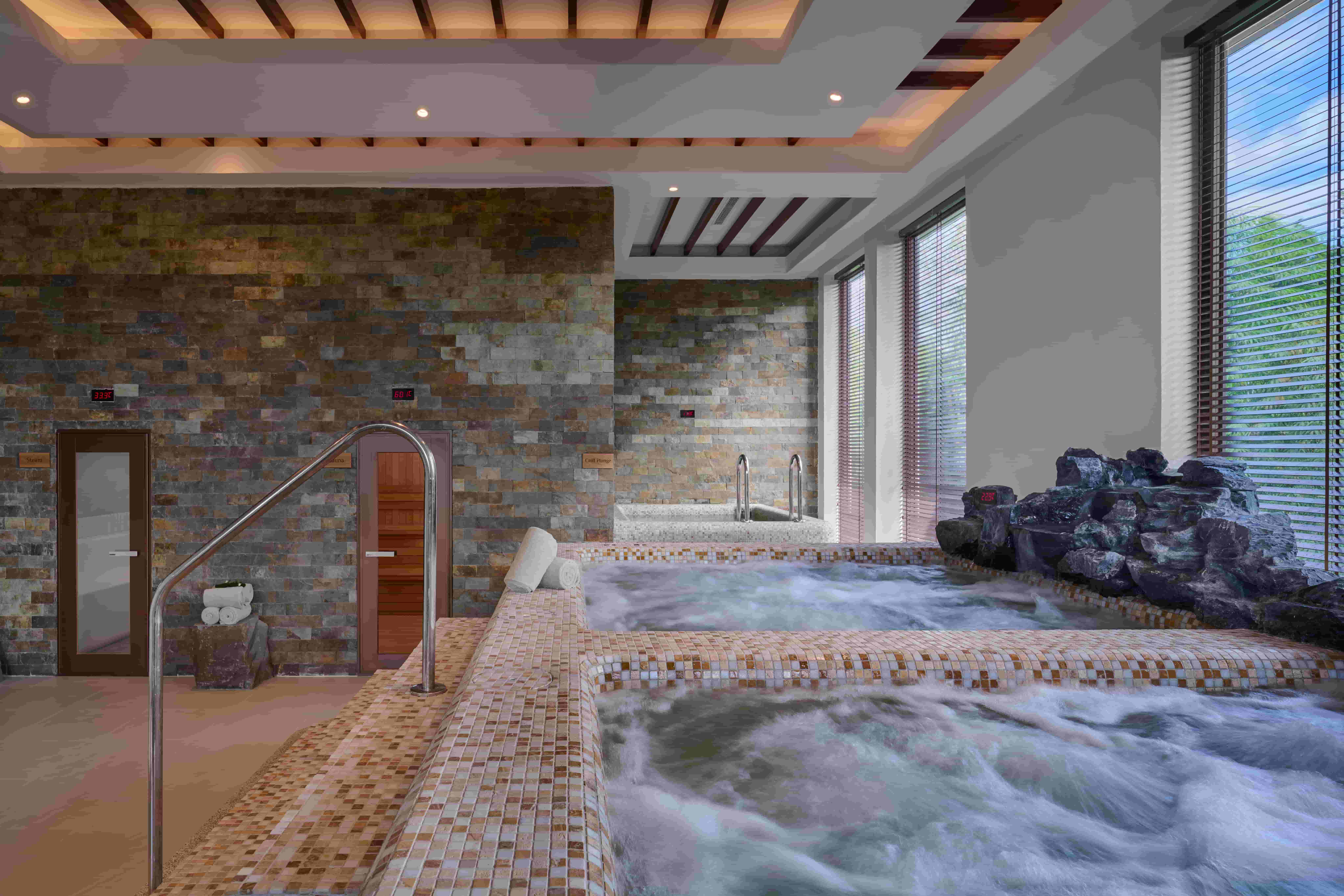 Alternating hot and cold Jacuzzis stimulate circulation and invigorate the body—soothing heat melts away tension while icy plunges awaken the senses for total rejuvenation.